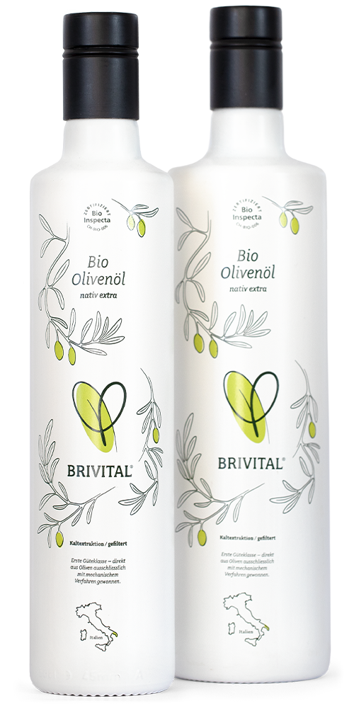 Olivenöl ist nicht gleich Olivenöl. Bei industriell hergestellten Olivenölen liegt der Schwerpunkt nicht bei Antioxidantien Vitamin E und Polyphenole. Die Wirkung dieser für die Gesundheit wichtigen Inhaltsstoffe entfaltet sich ab einer bestimmten Menge. Um einen bewussten Kauf zu ermöglichen, zeigt das BRIVITAL-Bio-Olivenöl unter anderem den Gehalt von Vitamin E und Polyphenolen auf der Flaschenetikette an. Jede Ernte führt naturbedingt zu leicht anderen Werten. Hohe Polyphenolwerte, wie im BRIVITAL-Bio-Olivenöl, können mit einem tendenziell «kratzenden» Abgang wahrgenommen werden. Ein qualitativ hochstehendes Olivenöl nativ extra weist eine Bitternote aus. Dennoch ist es geschmeidig – und zugleich frisch und mittelintensiv im Geschmack.